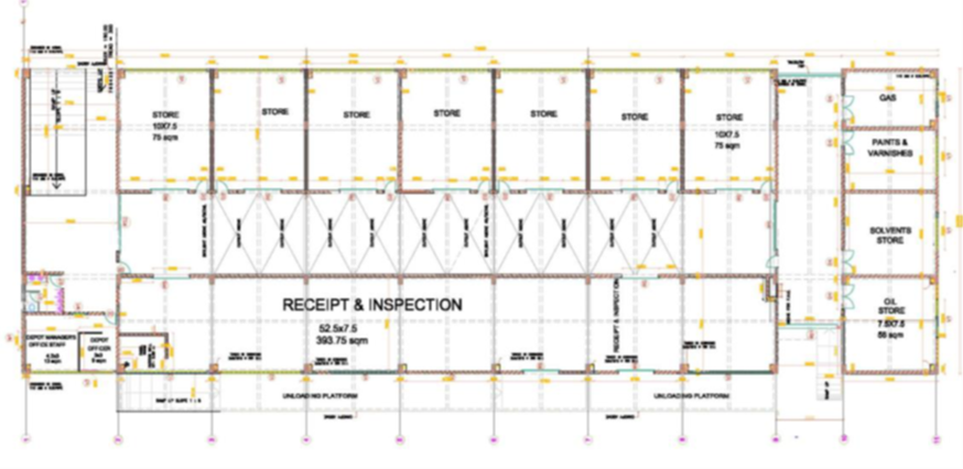 - इस सुविधा का उपयोग रोलिंग स्टॉक, S&T, ट्रैक्शन, AFC, लिफ्ट और एस्केलेटर और विद्युत और यांत्रिक (E&M) कार्यों से संबंधित सभी भागों और स्पेयर को संग्रहीत करने के लिए किया जायेगा।